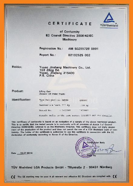 余姚市金昇機(jī)械有限公司(原余姚市金盛機(jī)械有限公司)是專(zhuān)業(yè)生產(chǎn)手動(dòng)和電動(dòng)液壓起升平臺(tái)、堆高車(chē)和搬運(yùn)車(chē)的公司。